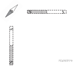 Стрел­ка ори­ен­ти­ру­ет­ся по ли­ни­ям маг­нит­но­го поля. Новое по­ло­же­ние стрел­ки изоб­ра­же­но на ри­сун­ке.