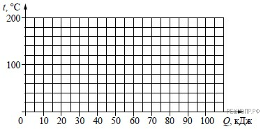 Куски стали и меди, каждый из которых имеет массу в 1 кг, равномерно нагревают в печи от 20 °C до 200 °C. Постройте графики зависимости температуры куска стали и температуры куска меди от полученного количества теплоты. Известно, что для нагревания 1 кг стали на 1 °C необходима энергия в 0,5 кДж, а для нагревания 1 кг меди на 1 °C необходима энергия в 0,4 кДж.