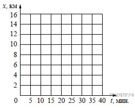 На прямолинейном участке шоссе находятся населённые пункты А, В и С. Координаты пунктов на оси Ох составляют, соответственно, 5 км, 8 км и 15 км. В начальный момент времени из пункта А начинает движение автомобиль, который через 5 мин. доезжает до пункта В. Не останавливаясь в пункте B, ещё через 20 мин. он достигает пункта С. Постройте график зависимости координаты автомобиля от времени на всём пути. Движение между пунктами А и В, а также между пунктами В и С считать равномерным.