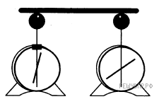 На рисунке изображены два одинаковых электрометра, шары которых имеют заряд противоположных знаков. Каковы будут показания обоих электрометров, если их шары соединить тонкой медной проволокой?
