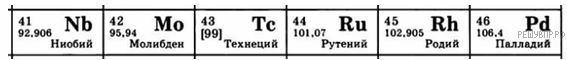 На рисунке изображён фрагмент Периодической системы химических элементов Д. И. Менделеева. Изотоп рутения испытывает β−-распад, при котором образуются электрон e−, нейтрино и ядро другого элемента. Определите, какой элемент образуется при β−-распаде изотопа рутения.